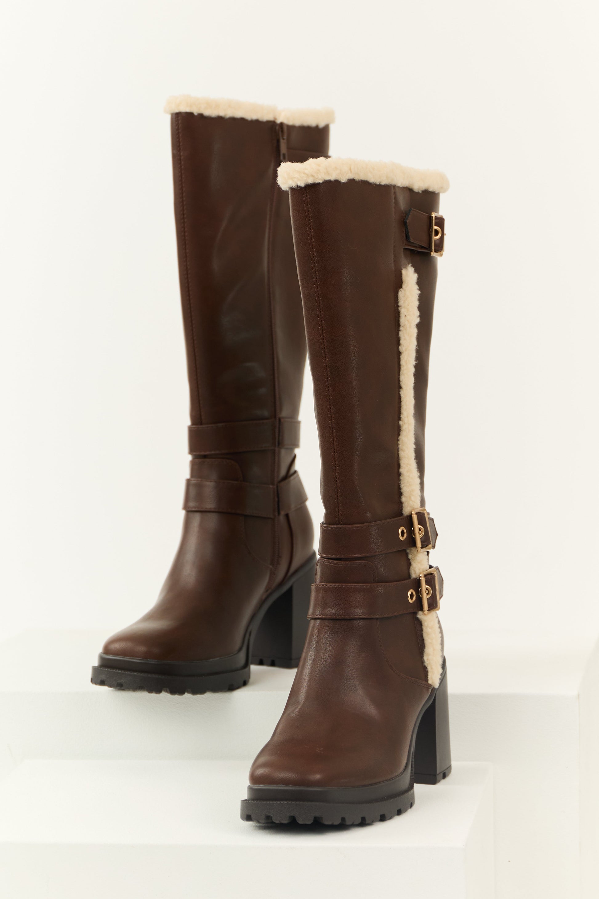 Spice Faux Leather Sherpa Lined Tall Platform Boots